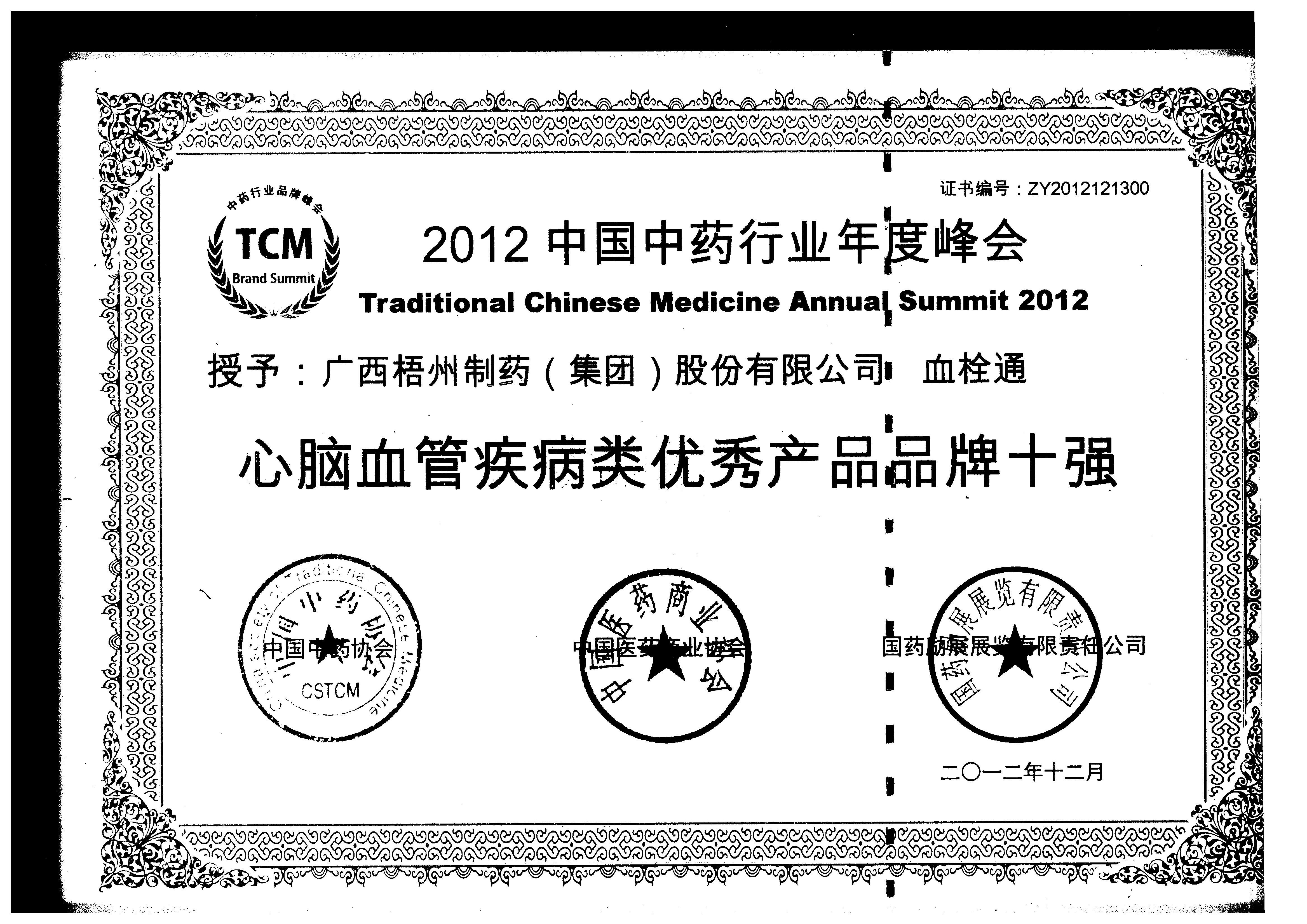 血栓通荣获心脑血管疾病类优秀产品品牌十强