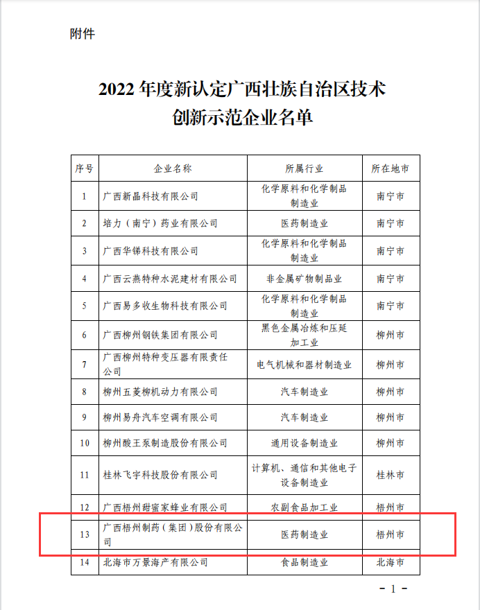 近日,广西壮族自治区工业和信息化厅发布《自治区工业和信息化厅 自治区财政厅关于公布2022年度新认定广西壮族自治区技术创新示范企业名单的通知》,伟德国际1946榜上有名,获评为2022年度“广西壮族自治区技术创新示范企业”。