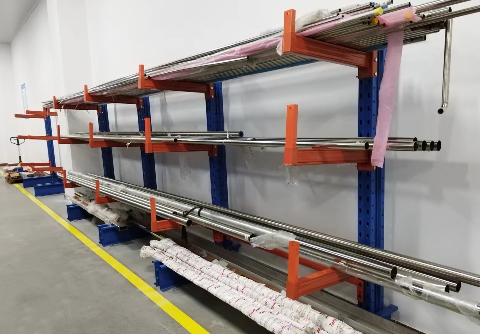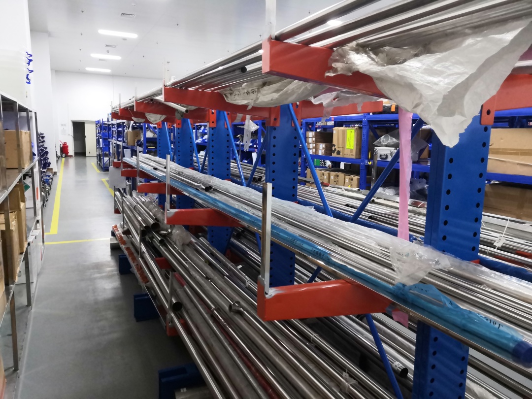 对于双面悬臂式货架不锈钢管摆放凌乱,钢管进出困难,并影响人员车辆走动的问题,团队通过变更成2个单面悬臂式货架,并将货架移位靠墙壁摆放解决问题。改善后,不锈钢管进出通畅,不影响人员车辆移动,同时减少了安全隐患。