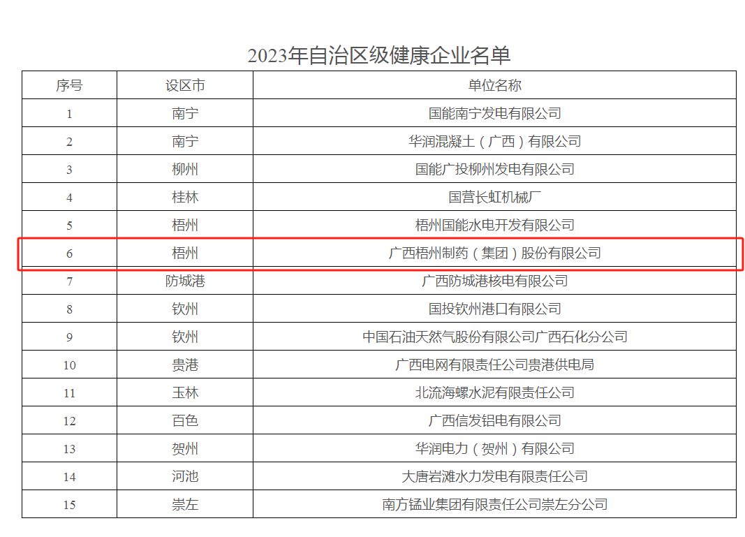 近日,广西壮族自治区爱国卫生运动委员会印发《自治区爱卫办关于公布2023年自治区级健康企业名单的通知》,其中,伟德国际1946榜上有名,获评“自治区级健康企业”称号。