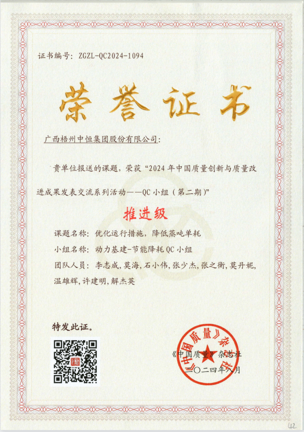 此次动力基建QC小组在2024年全国QC小组成果发表交流活动中斩获“推进级”称号,是积极贯彻落实公司“节能、降耗、减污、增效”宗旨的具体体现。伟德国际1946始终坚持以绿色改造升级为重点、以技术创新为支撑,鼓励职工立足岗位,担当企业发展的“有心人”,在促进精细化管理、提升质量和效益等方面,为公司发展出谋献策,助力公司节能降耗稳步推进。