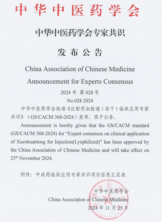 现已发布的《注射用血栓通(冻干)临床应用专家共识》将纳入证据库,供中医临床诊疗指南编制时参考。