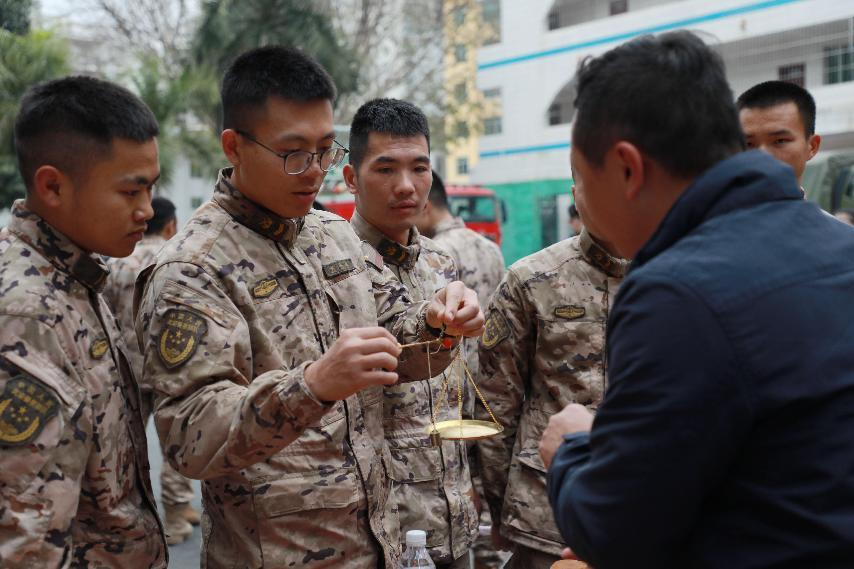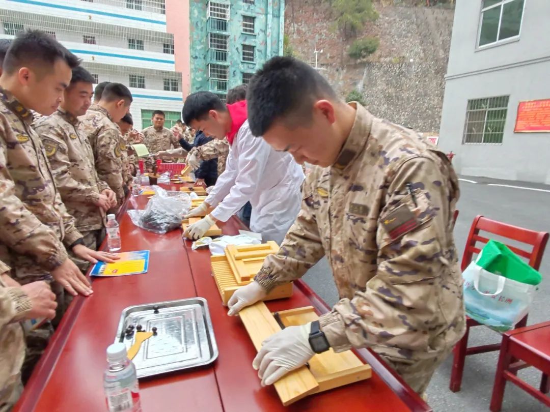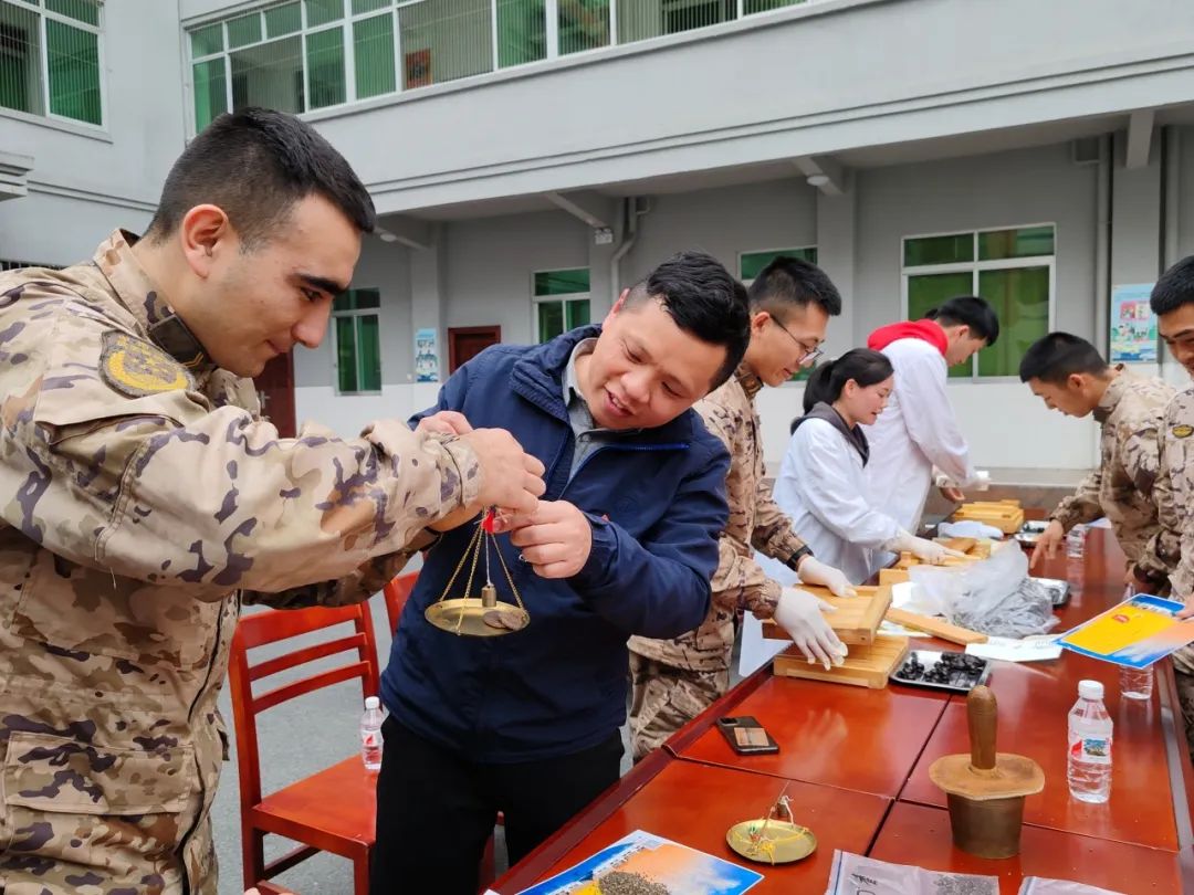 戥子、杵臼、搓丸板,这些平日很少接触到的中药传统制药工具,触发起武警官兵们强烈的好奇心和探知欲,兴致勃勃地尝试操作,纷纷参与体验中华跌打丸制作技艺,从制丸条到成功搓制成丸,每一道工序无不感受着非遗文化独特的魅力。