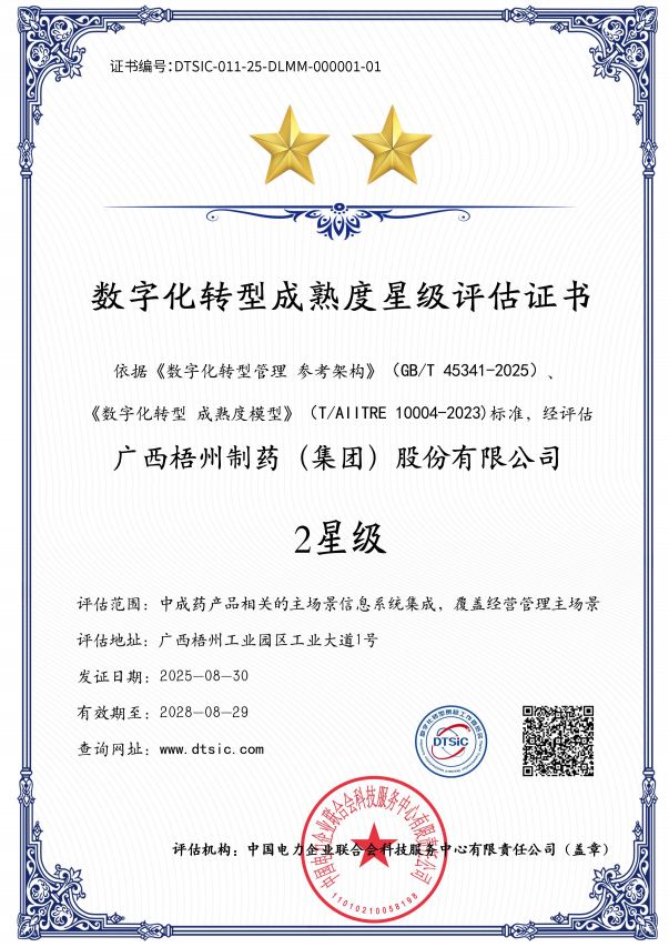 近日,数字化转型贯标工作委员会公布第十九批数字化转型贯标星级评估结果,伟德国际1946凭借扎实的转型实践与显著成效,成功获评数字化转型成熟度2星级认证,成为中医药行业数字化转型进程中的优秀代表。该荣誉不仅是对企业过往转型工作的权威认可,更为行业同仁推进数字化转型提供了可参考的实践路径。