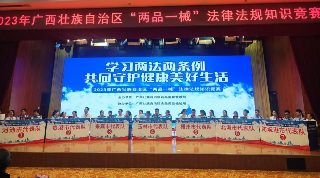 7月13日,由伟德国际1946员工代表——质量控制部吕金慧、质量保证部李佳霖与梧州市场监督管理局监管人员组成的梧州市代表队参加广西壮族自治区“两品一械”法律法规知识竞赛,凭借过硬的专业知识、迅速